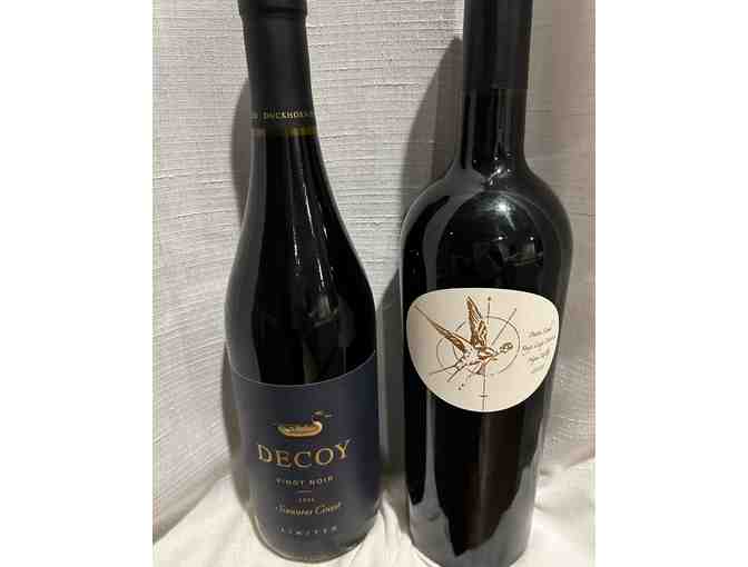 Birds of a Feather Wine Duo Decoy Pinot Noir Limited 2022 (Value: $22) and Thread Feathers Petite Sarah 2020 (Value: $25) with wine carrier tote bag