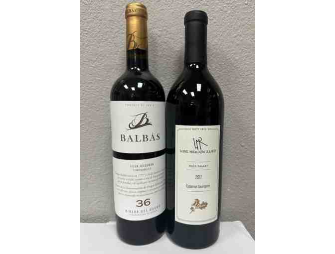 Two bottles of wine in a wine tote 2017 Long Meadow Ranch Cabernet Sauvignon (Value: $40) and 2014 Balbas Tempranillo (Value: $30)