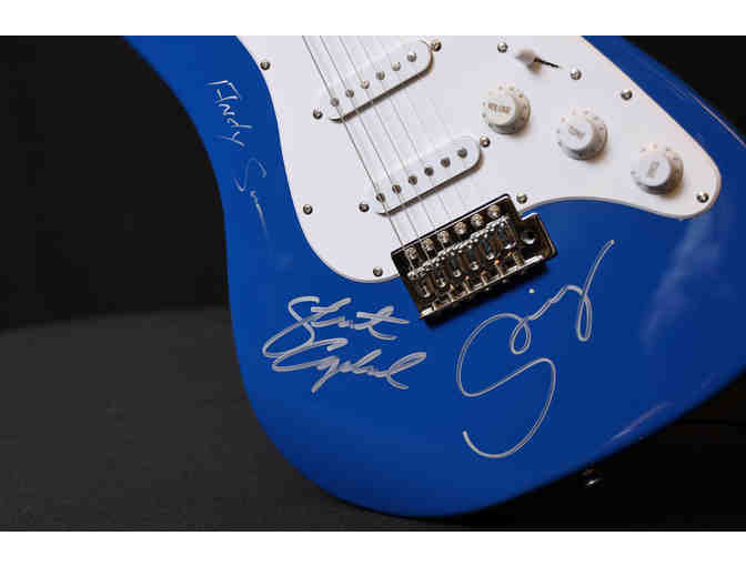 The guitar was signed by the band members in silver ink in New York City on August 1, 2007.