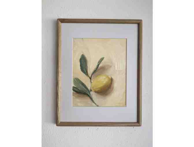 Original 8” x 10” oil lemon still life painting framed, matted and ready to hang. This piece can bring a little brightness to any space!