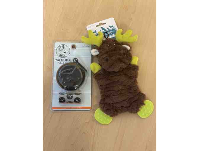 A toy for your dog and a doggy bag holder for you!