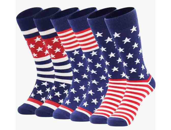 Why just wear your heart on your sleeve when you can wear your patriotism on your ankles? These bold, star-spangled socks are here to keep your toes cozy and your country proud — whether you're marching in a parade or just strutting through the snack aisle like it’s the land of the free.