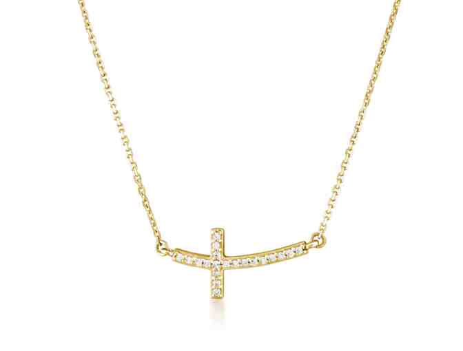 This beautiful necklace will look dazzling on and lady. It's 1/10 ct diamond, 10 kt yellow gold sideways cross necklace.