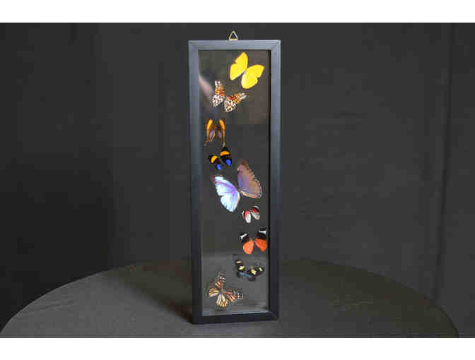 Proudly display this beautiful, framed butterfly piece featuring nine real butterflies that have been preserved and framed.