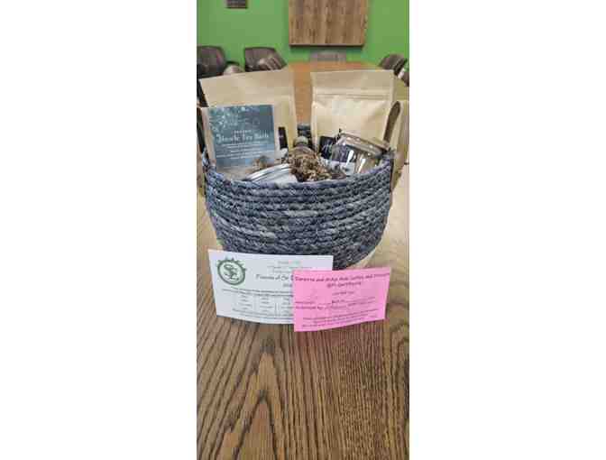 Enjoy some favorite treats with this Ice Cream and Coffee Basket. You will receive a bag of Bali Blue Moon Coffee and Mexico Coffee, some bath salts, a package of Muscle Tea Bath, a candle, glass mug, a $25 gift card and one ice cream cake a month from May to August.