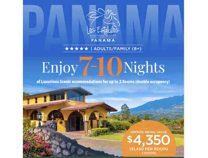 The whole family can enjoy a luxurious scenic accomodations for 7-10 nights at Los Establos Boutique Resort in Panama. This offers up to 3 rooms with double occupancy per room included.