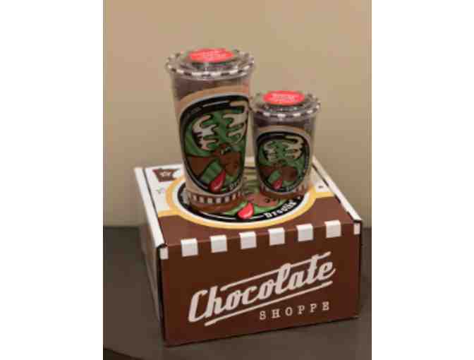 Gift Box with 20 oz. cup of Malted Milk Boulders (We don't mess around with pebbles and stones - we go right to the BOULDER. These malted milk balls are our #1 seller for a reason. It's a perfect balance of chocolate and malt. When someone says "they're huge" - they are not kidding around ) and 13 oz. cup of Gopher Holes (Minnesota and gophers go well together unil they decide to dig up the yard. Hit the porch and enjoy a cup of these little, poppable caramel bites covered in milk and dark chocolate with just a hint of sea salt.