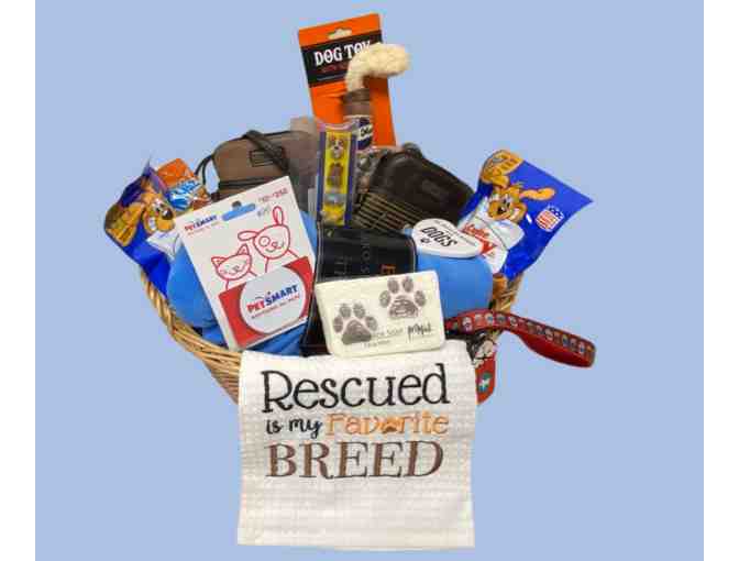 $25 PetSmart Gift Card, Stylish Leash, Tasty Dog Treats, Plush Dog Toy, Soft Dog Blanket, Hand Soap, Cute Dog Magnets, Decorative Dish Towel, Two Small Side Purses.