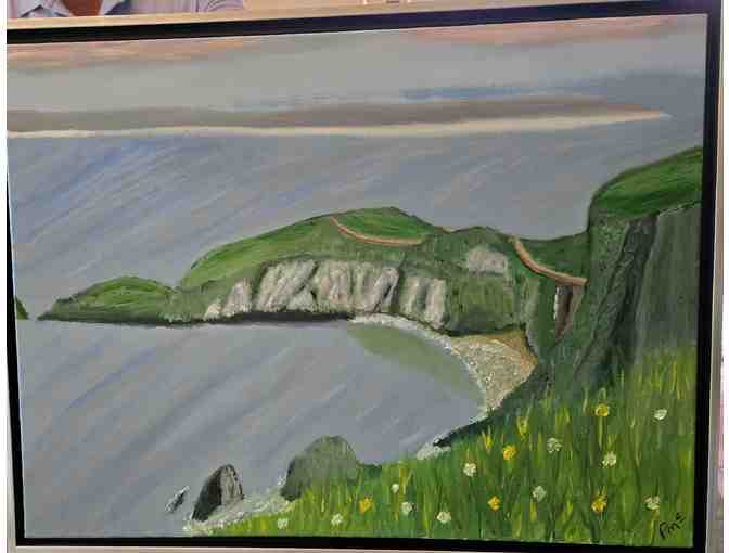 Experience the dramatic beauty of Northern Ireland’s coastline with this stunning original oil painting of the Carrick-a-Rope Bridge, located in Ballintoy, on Carrick Island. This 24" x 18" oil on linen canvas captures the breathtaking scenery and intricate details of one of Ireland’s most iconic landmarks.