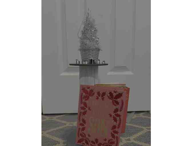 18 inches tall with a 6 inch diameter base, this unique Christmas decoration even has tiny presents ringing the base as a finishing touch!