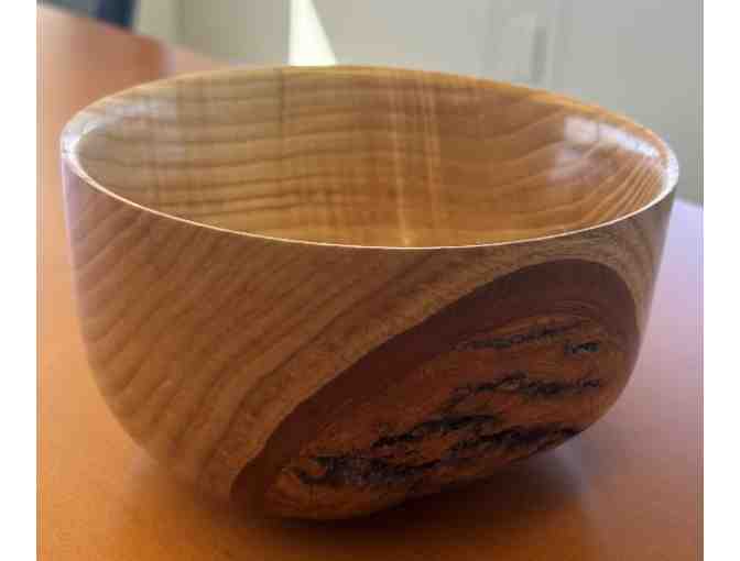 3.5 h x 6w bowl with a bark inclusion finished with shellac Made from large ash tree located in Waccabuc, NY killed by the Ash Bore Beetle. Custom handmade pieces from the collection of woodworking artist Denis McGuire. Bid on one item or collect them all to make a beautiful display set. Items not available in stores.