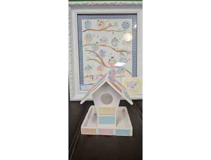 Each bird in this adorable framed print was painted with love by the 3-year old students in Mrs. Lennon's Preschool Class.