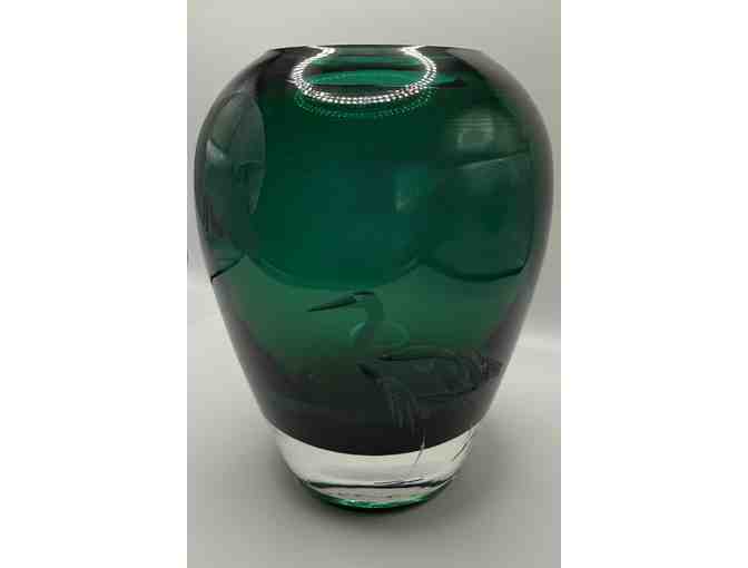 Sandblasted Forest Green Etched Glass Vase