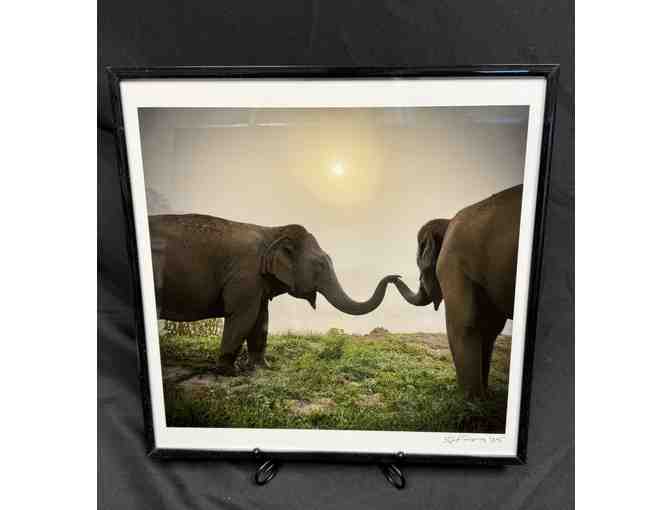This photograph taken by Steve on location, while Walking with Giants at the Anantara Resort, Golden Triangle, Thailand. The Golden Triangle Elephant Foundation (GTAEF) rescues elephants from the logging industry, or other circumstances. Upon arriving at GTAEF, the staff rejoices when elephants bond with a buddy, like these two. (Our photographs don't do justice for this piece).