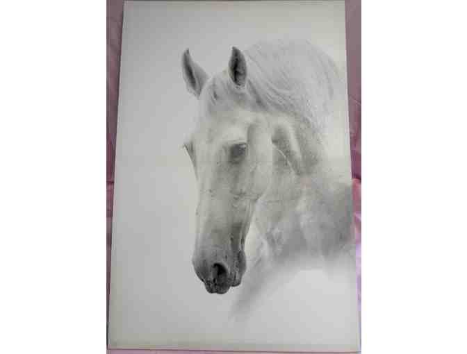 Stunning White Horse Giclee Canvas Print, wooden stretched and framed, measures 24" x 36"