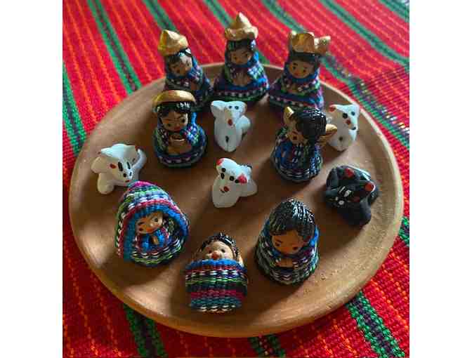 This adorable hand made set includes 13 pieces and the display base. Each figurine measures approx 1 inch tall, and is wearing traditional Guatemalan traje.