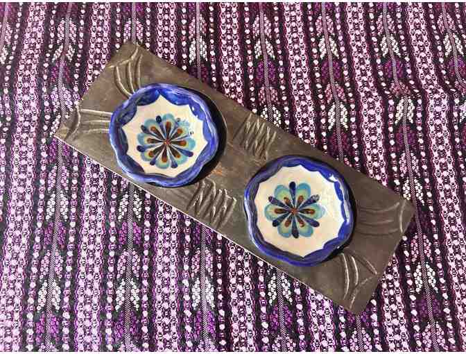 Atitlan Elegance: Handcrafted Tray & Ceramic Dish Set