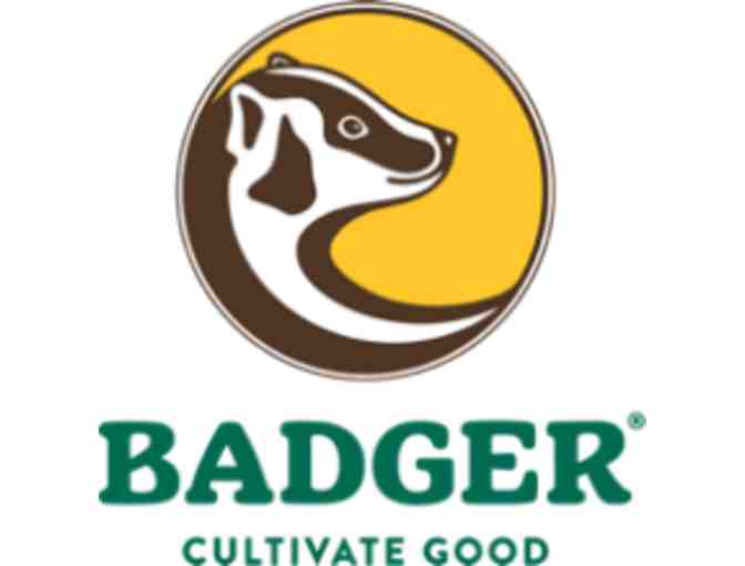 A gift basket full of Badger goodies! Badger is a mission-driven family-owned company located in Gilsum, New Hampshire. They blend the finest organic plant extracts, exotic oils, beeswax, and minerals to make the safest, most effective products possible to soothe, heal and protect.
