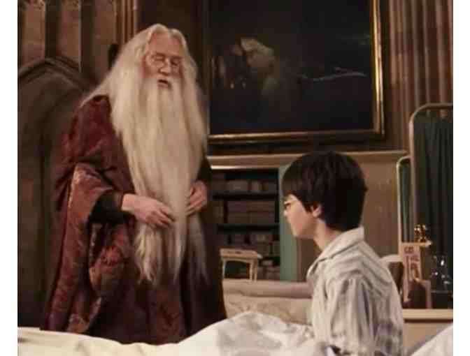 Actual REAL Movie Prop, from the film "Harry Potter and The Sorcerer's Stone"!  At the end of the film (where Harry is sitting in bed, speaking with Dumbledore), Dumbledore tells Harry that Nicholas Flamel will die.  In the Portrait behind Harry's Bed, you can see a Nurse, who leans down and blows out candles.  These are the actual Candlesticks, used in the film!  (See attached photos, with a red arrow, pointing to the Candlesticks.)