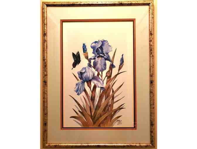 Art -- Iris & Butterfly -- framed / matted / signed / numbered