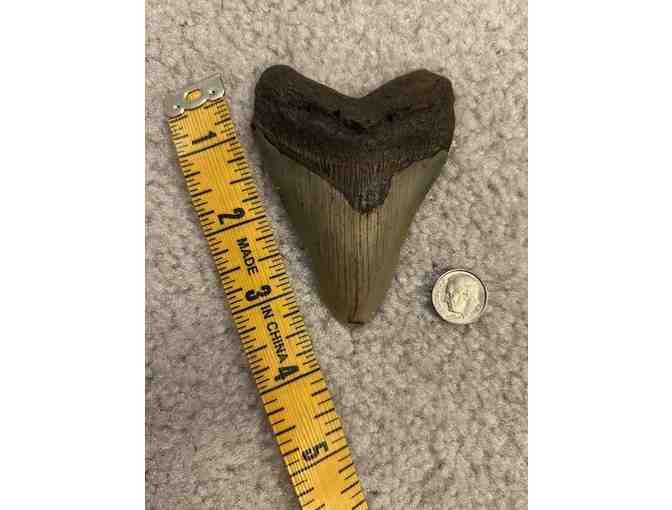 REAL Megalodon Shark Tooth. 2 Million years old!!! (Found by Enfield Scuba Divers, in 110 feet of water.) Excellent intact condition with serrations visible. Can be shipped nationwide (with insurance) or picked up for free in Enfield, CT after the Auction.