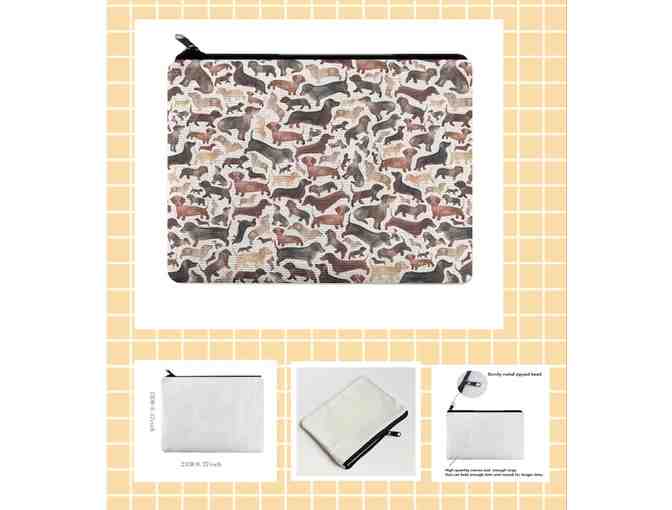 This nylon zipper pouch measures approx. 7.5" x 5". The pattern is on one side only.