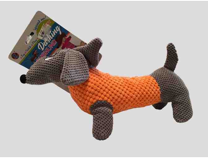 You are bidding on an adorable dachshund dog toy! But are you really going to want it destuffed by your pup? It is so unique! It is 12" from tip of nose to tip of tail!