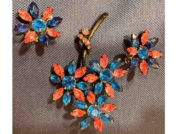 Vintage Pink and Blue Pin-3" with Matching Clip- on Earrings-1"