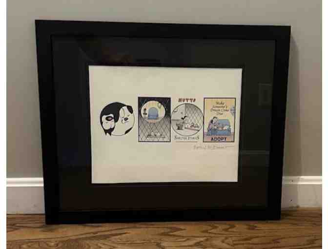 Bid on this unique hand-signed print promoting dog adoption by Mutts creator Patrick McDonnell! Beloved for its heartwarming characters and messages of compassion, Mutts has touched the hearts of animal lovers everywhere. This unique collector’s item is a perfect addition for any fan of the comic or supporter of animal rescue.