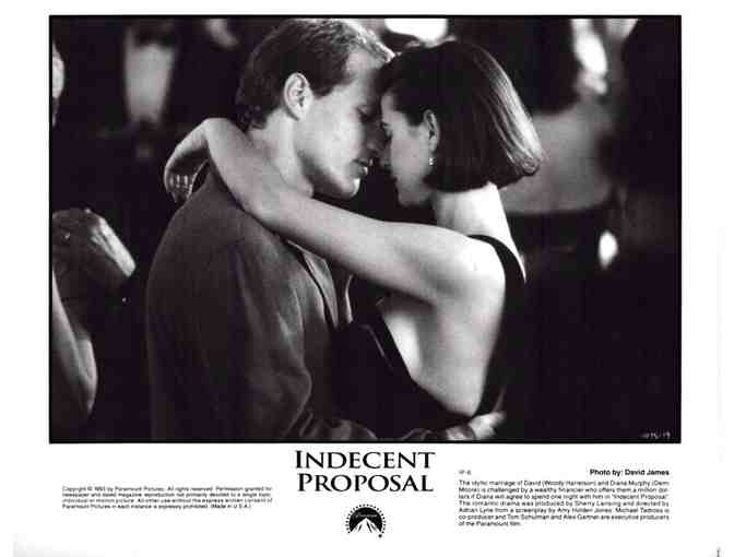 Indecent Proposal, the 1993 Adrian Lyne love triangle drama starring Robert Redford, Demi Moore, Woody Harrelson, Oliver Platt, Seymour Cassel and Billy Bob Thornton.