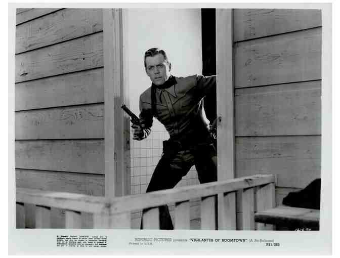 DESCRIPTION: This is a set of 8 movie presskit stills each measuring approx. 8x10 in a variety of scene. Each still has the Republic Pictures and the 1951 National Screen Service rerelease tag and information. This set comes with the original stamped presskit envelope.