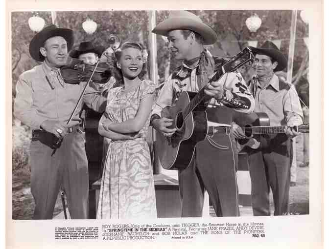 Springtime in the Sierras originally released in 1947 William Witney singing cowboy western musical starring Roy Rogers (“King of the Cowboys”), Trigger (“Smartest Horse in the Movies”), Andy Devine, Jane Frazee, Stephanie Bachelor, and Bob Nolan and the Sons of the Pioneers.