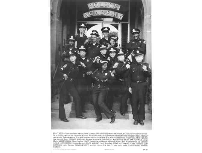 Police Academy, the classic 1984 Hugh Wilson rookie police officers screwball crime comedy starring Steve Guttenberg, Kim Cattrall, Bubba Smith, George Gaynes, Donovan Scott, David Graf and Michael Winslow.