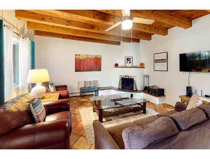 Walking distance to downtown Santa Fe and the Railyards art district, this updated 3BR/2BA home is rich with classic Southwestern style. Tile floors and a kiva fireplace complement local artwork and a modern kitchen. The private yard is perfect for watching the sunset or enjoying an alfresco meal.