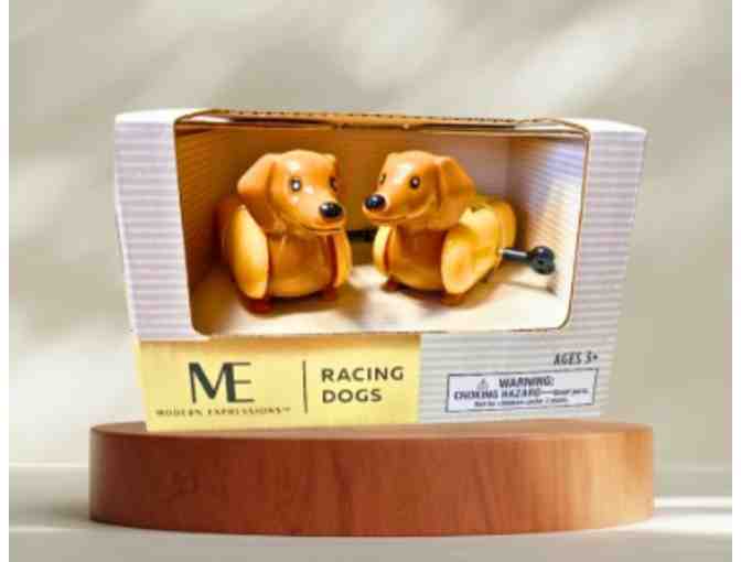 One mustard, one ketchup wind up hotdog Dachshunds racing toys by Modern Expressions! Each is approximately 4" long.
