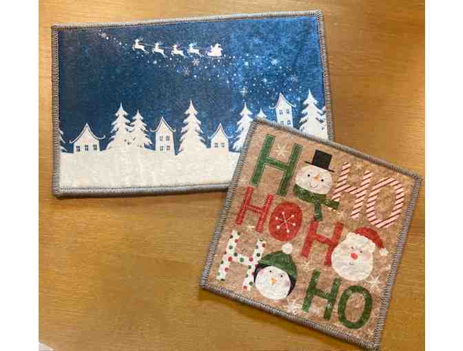 Christmas Eve: Blue and white, furniture grade fabric, 12.5" x 8.25", with non-slip backing.