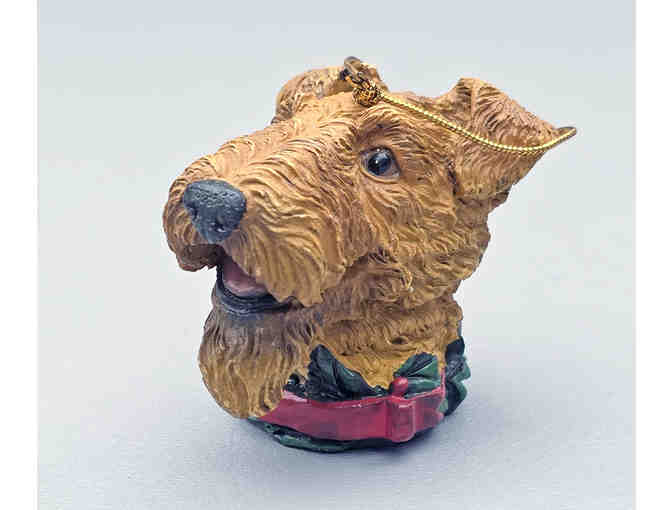 Resin Airedale head ornament. 2" x 2" not including hanger
