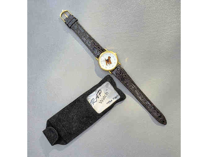 Airedale watch with genuine leather strap and buckle. 9.5" long when laid open. Will need battery.