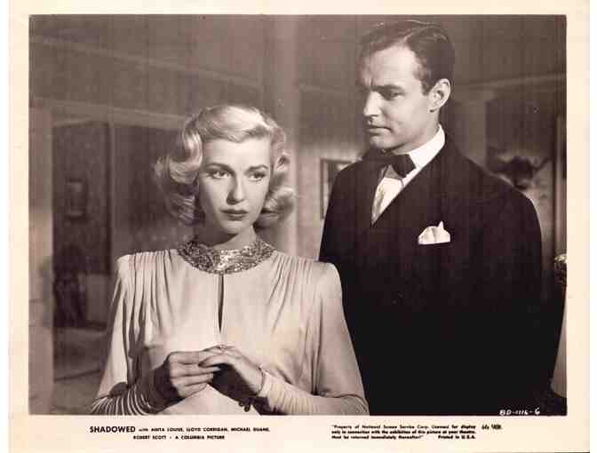Shadowed, the 1946 John Sturges crime murder thriller starring Anita Louise, Lloyd Corrigan, Michael Duane, Terry Moore, Robert Scott and Doris Houck.