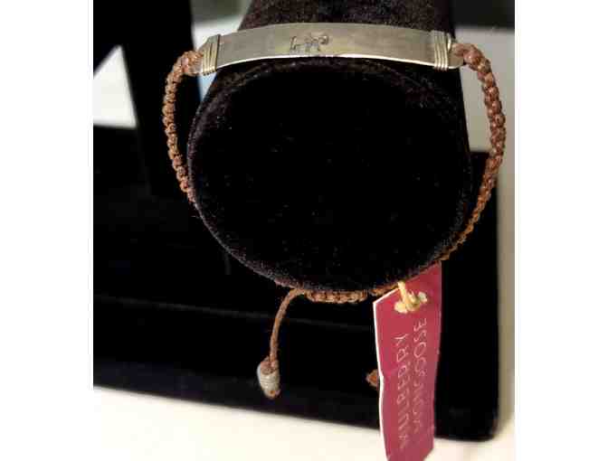 Bracelet: Hammered Snare w/ elephant stamp (2 of 3) -- Brown braided band / adjustable