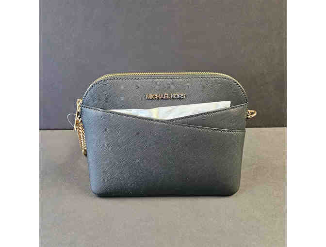 Elevate your style with this chic Michael Kors Jet Set Travel medium leather crossbody handbag in classic black with gold accents. Perfect for hands-free convenience and timeless elegance on the go!