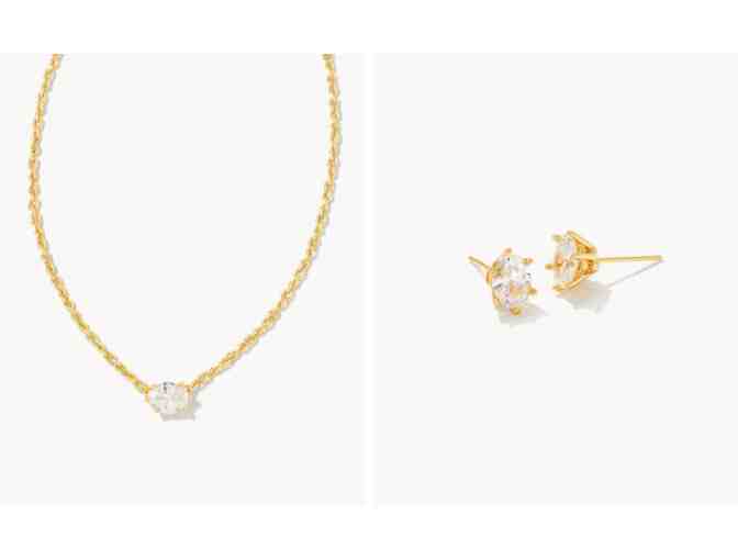 Add timeless elegance to your jewelry collection with this stunning Kendra Scott Cailin CZ necklace and earrings set. Featuring a classic gold finish with luminous white accents, this duo is perfect for elevating everyday looks or making a statement on special occasions.