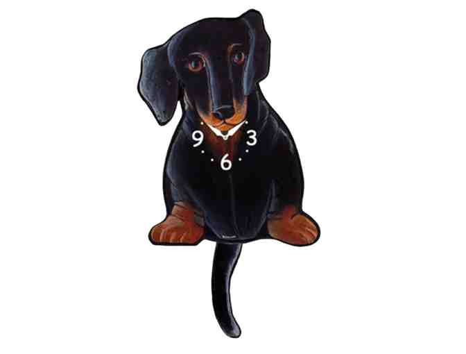 By pinkcloud.com. Tail swings gently however he has to be hung slightly tilted to get the full swing. Runs on 1 AA battery (included). Original artwork by Tara Cafiero. 7" x 10". Made in USA since 1992.