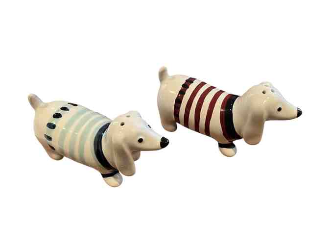 Ceramic Salt and Pepper shakers are 4.5" long x 1.5" wide x 2.5" tall. These are from 2017 sold by Target. There is an awesome cookie jar that matches! The cookie jar is item number is 372!