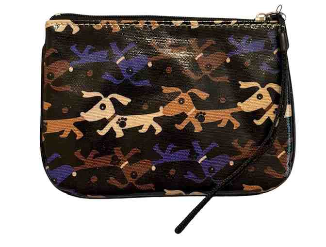 Bueno Brand Vegan Leather Dachshund Toiletry zipper Bag - Wrist Strap