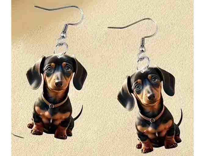 Black and Tan Dachshund Earrings - Acrylic 2 Dimension