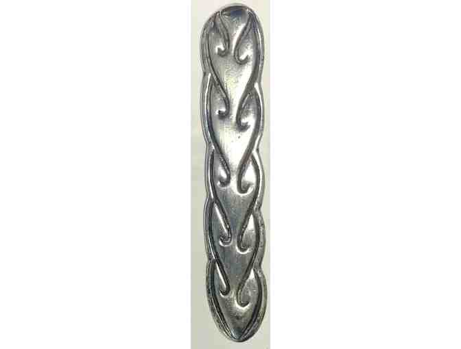 Long, distinguished Pure, Solid Silver Pin. Elegant, with interesting pattern. Dimension