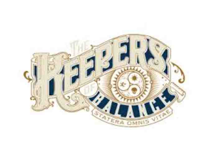 Keepers of Balance Escape Room Package including a gift card for $110 (2 players), t-shirt, hat and sticker