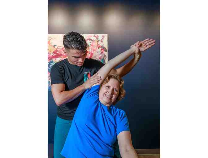 A certificate for a 50 minute one-on-one assisted stretch from StretchLab and a pair of grip socks.