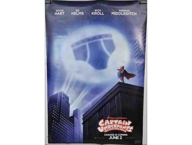 Captain Underpants: the First Epic Movie, the 2017 David Soren cgi animated family comedy featuring the voices of Kevin Hart, Thomas Middleditch, Ed Helms, Nick Kroll, Jordan Peele, Kristen Schaal, DeeDee Rescher, Brian Posehn and Mel Rodriguez.